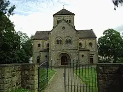 Der neuromanische Zentralbau aus Bruchstein, mit Vierungsturm und einer Ostapsis wurde von 1923 bis 1926 in Form eines griechischen Kreuzes errichtet. Die Eckeinbauten sind niedrig gehalten. Die Wände sind durch Gurtgesimse, Lisenen und Rundbogenfriese gegliedert. In die zweijochigen Kreuzarme wurden Gratgewölbe eingezogen. Die Ostkonche wurde mit tiefen Fenstereinschnitten versehen.