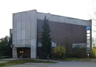 Der Gebäudekomplex besteht aus dem Zentralbau der turmlosen Kirche, die über einen flachen Gebäudetrakt mit der H-förmigen Anlage aus Gemeindezentrum und Pfarrhaus verbunden ist. Die Kirche ist ein Stahlbeton-Skelettbau. Der Grundriss des Baukörpers ist annähernd ein Quadrat, dessen Ecken abgeschnitten sind, so dass sich ein Achteck mit vier langen und vier kurzen Seiten ergibt. Vor den offenen kurzen Seiten stehen Wände aus Platten in Sichtbeton, um schmale, senkrechte Fenster nach außen versetzt. Daneben liegen niedrige dreieckige Anbauten, im Innenraum als Nischen ausgebildet. Die äußere Wandverkleidung über den langen Seiten besteht aus rotbraunen Ziegeln. Auf dem flachen Zeltdach sitzt eine Laterne, zu der von der Altarwand keilförmig eine Dachgaube ansteigt, die dem Innenraum zusätzliches Tageslicht bringt. Die Attika, die das Zeltdach verdeckt, ist aus Platten in Sichtbeton ausgeführt. Die Stahlkonstruktion des Dachstuhls, über dem sich die hölzerne Decke befindet, ist offen. Acht Streben führen von den offenen Ecken bis unterhalb der Laterne in der Mitte. Die Innenwände sind im unteren Bereich zur Verbesserung der Raumakustik mit Lochklinkern verkleidet, darüber sind sie mit Holz verschalt.