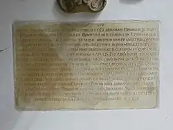 Eine Vielzahl von Grabdenkmälern sind im Inneren der Kirche aufgestellt. Rechts vom Hochaltar steht eine schmale hochrechteckige Sandsteinplatte für Ulrich von Thannek († 1513). Die Sandsteinplatte enthält ein Wappenrelief und Reste der Bemalung. Oberhalb des Wappens befindet sich eine Helmzier, in den Ecken kleine Wappen. Im unteren Bereich der Platte ist eine Inschrift angebracht. Auf der anderen Seite, links des Hochaltares, befindet sich die Grabplatte der Witwe des Ulrich von Thanneck, Ursula eine geborene von Bergen-Langenegg aus dem ersten Viertel des 16. Jahrhunderts. Das Sandsteinrelief mit noch zum Teil erhaltener Bemalung zeigt eine Pietà zu Füßen des Kreuzes. Die Darstellung in flacher Blende ist ringsum mit Maßwerk umgeben. Im unteren linken Bereich ist ein kniender Ritter mit Frau und Sohn, auf der anderen Seite das Wappen derer von Thanneck zu sehen. Die Inschrift im unteren Bereich ist völlig verwittert. Ein Reliefwappen aus Bronze um 1500 derer von Thanneck findet sich noch an der Ostseite des Chorbogens. Neben weiteren Platten aus dem späten 19. Jahrhundert finden sich noch Grabdenkmäler für Johannes Evangelista Hörner († 1761), Pfarrer seit 1741. Die Grabplatte ist aus Solnhofener Plattenkalk gefertigt und zeigt im oberen Bereich ein Klechrelief um welches ein Spruch angebracht ist. Für Pfarrer Joseph Seitz († 1741) ist ebenfalls eine aus Solnhofener Plattenkalk gefertigte flach geschweifte Platte vorhanden. Diese zeigt oben ein Kelchrelief zwischen graviertem Bandelwerk. Innen im Vorzeichen an der Ostwand ist eine große querrechteckige Solnhofener Platte mit langer Antiquainschrift für Dekan und Pfarrer Albanus Onuphrius de Singeren († 1705) eingesetzt.