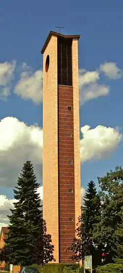 Die Kirche, ausgestattet mit einem 37 Meter hohen freistehenden Turm, wurde nach Plänen von Josef Fehlig erbaut. Zur Kirchengemeinde gehört auch die am Klappgarten gelegene Kindertagesstätte „St. Michael“.