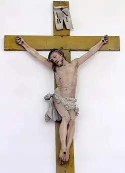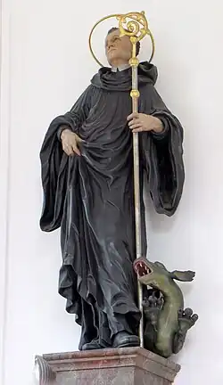 An den Wänden des Chores hängen zwei weitere wertvolle Figuren, links ein Hl. Johannes der Täufer und ihm gegenüber ein Hl. Magnus. Beide Figuren wurden auf Grund einer Signatur im Rücken des Hl. Johannes dem Johann Sigmund Hitzelberger zugeschrieben. Die Buchstaben „JH“ kennzeichnen hier aber als Bildhauer den Johann Hops, dem die beiden Kunstwerke stilistisch einwandfrei zugeschrieben werden können.[4] Von Hitzelberger tatsächlich geschnitzt ist dagegen wohl ein Kruzifix an der Südwand des Schiffes.