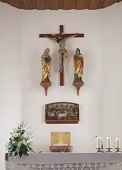 Zur Kirchenausstattung gehören mehrere hölzerne Statuen aus dem 14.–19. Jahrhundert, darunter eine um 1380 entstandene sitzende Muttergottes. Ein Relief mit der Darstellung des Abendmahls Jesu stammt aus dem frühen 16. Jahrhundert. Die Orgel wurde 1928 als Opus 97 von der Reiser Orgelbau errichtet.