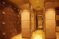 Wie auf einem Friedhof werden die Urnen hier in der Michaelskapelle durch eine Öffnung im Kirchenboden, geschützt mit einer zu öffnenden Glaspyramide, vom Bestatter in die Gruft hinabgelassen. Nach Segnung und Verabschiedung wird die Urne vom Bestatter in einem Stelenfach beigesetzt. Die Stelenfächer werden mit vorgefertigten Grabplatten aus Basaltstein, die mit christlichen Symbolen sowie Namen, Geburts- und Sterbedatum der Verstorbenen gekennzeichnet sind, verschlossen.
