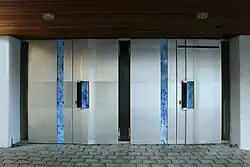 Im Jahr 2002 wurde an der Wand des Umgangs ein Kreuzweg des Künstlers Paul Wyss angebracht. Er bietet als Besonderheit nach den 14 traditionellen Stationen eine 15. Station, die die Auferstehung Jesu Christi symbolisiert. Diese besondere Station befindet sich in der Nähe des Taufsteins und verweist so auf den Zusammenhang von Auferstehung und Taufe in der Osternacht.[25] Der gesamte Kreuzweg ist frei in der Form und in der Aussage auf die wesentlichen theologischen Elemente reduziert. In Anlehnung an den Tabernakel und das Chorkreuz wurden die einzelnen Stationen in einer Silber-Bronzelegierung gegossen. Die Modulation der Oberfläche ist unterschiedlich und bleibt in der Tiefe grau-schwarz wie der Fussboden der Kirche. Die erhöhten Flächen erhalten durch das Polieren der Silberlegierung eine helle Oberfläche, die das Weiss des Wandverputzes aufnimmt.[26]