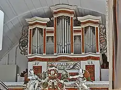 Die Orgel des Orgelbauers Papenius geht auf das Jahr 1696 zurück, als ein namenloser Orgelbauer das pedallose Werk auf Principal 2' Basis erbaute. Von dieser Orgel sind vier Register erhalten. 1728 erfolgte durch Zacharias Hildebrandt der Neubau der Orgel unter Verwendung der vorhandenen vier Register mit weiteren Registern ohne Pedal. Bereits 1773 wurde die Orgel durch Johann Gottfried Thiele aus Schloßvippach verändert, indem zwei Register im Manual abgebaut und 2 Pedalladen und -register neu erbaut wurden. Durch die Firma Eule aus Bautzen erfolgte 1982 die letzte Instandsetzung.[2][3] Die Disposition lautet:[4]