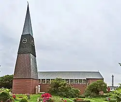 Nach der Neubesiedlung Helgolands 1952 wurde an der gleichen Stelle die heutige Kirche erbaut. Sie wurde am 29. November 1959 eingeweiht; die Architekten waren Peter Hübotter, Rolf Romero und Bert Ledeboer aus Hannover, die gemeinsam den bundesweiten Architektenwettbewerb für den Neubau der Kirche 1956 gewonnen hatten.[4] Die Außenanlagen mit dem Friedhof wurden von Wilhelm Hübotter gestaltet.[5] Wegen Bauschäden wurde die Kirche 1969 erneuert. Die Ausstattung stammt zum Teil aus der Vorgängerkirche. Der Windrichtungsgeber auf der bronzenen Kirchturmspitze stellt eine Schaluppe dar.[6] Die Kirche hat den Status Kulturdenkmal von besonderer Bedeutung.[7]