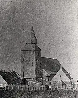 Von 1704 bis 1706 wurde aus Backstein ein Westturm mit quadratischem Grundriss und hoher, geschweifter Haube gebaut. Dieser Turm wurde wegen Baufälligkeit 1878 abgebrochen und 1885 durch einen neuen ersetzt. Der Innenraum der Kirche war mit einer flachen, mit Ornamenten bemalten Holztonne überspannt, in welche Lichtschächte einschnitten. An der Basis der Tonne verliefen quer zur Kirche weiß gestrichene Zugbalken. Das Gestühl war in drei Blöcke geteilt, und es gab eine umlaufende Empore. Von der Ausstattung ist der überwiegende Teil bei einem schweren Bombenangriff am 18. April 1945 zerstört worden, so unter anderem der Kanzelaltar aus Mahagoni von 1821. Der Bronzetaufkessel aus der ersten Hälfte des 14. Jahrhunderts überstand den Angriff, fiel allerdings Schrottsammlern der Nachkriegszeit zum Opfer. Ein 1705 in Friedrichstadt gefertigter vergoldeter Abendmahlskelch mit mittelalterlichem Fuß und Ornamenten ist erhalten.