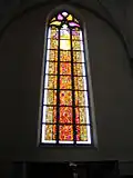 In den Jahren 2000 bis 2020 gestaltete der Wiesbadener Biologe, Physiker und Glasmaler Karl-Martin Hartmann die vormals zerstörten und bis dahin schmucklos gehaltenen Kirchenfenster neu.[2] Als Motive verwendete er u. a. Feynmandiagramme, Abbildungen von Drei-Jet-Ereignissen, Spektroheliogramme (inkl. einer Darstellung des Kometen Hale-Bopp), eine fotografische Aufnahme des Galaxienhaufens Abell 2218, bei dem der von Albert Einstein vorhergesagte Gravitationslinseneffekt beobachtet werden konnte.