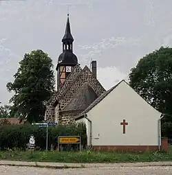 Ein aus dem 18. Jahrhundert stammender Fachwerkreiter mit gelbem Backstein, barocker Haube und einem laternenförmigen Aufsatz sitzt auf dem westlichen Giebel des Schiffes. Der Dachreiter sowie das Dach des Kirchenschiffes befinden sich in einem sehr schlechten Zustand. Die Fensteröffnungen sind teilweise noch in ihren ursprünglichen Umrissen zu erkennen, ebenso die jetzt vermauerten Portale an der Nord- und Südseite.