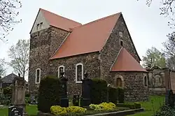 Auf dem Kirchhof nördlich der Kirche befindet sich die aufwendig gestaltete Familiengrabstätte der Gutsbesitzerfamilie Kretzschmann aus der Zeit um 1890 und ein Kriegerdenkmal für die Gefallenen des Ersten Weltkriegs.