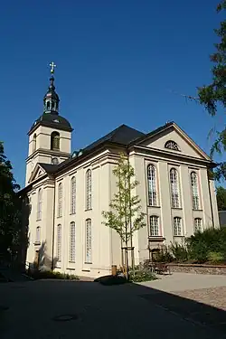 Die heutige Kirche nach den Plänen des Baumeisters Christian Friedrich Uhlig wurde stattdessen auf dem Kellerberg errichtet. Der Grund wurde 1839 gelegt, 1842 konnte die Einweihung stattfinden.