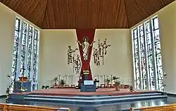 Der sechseckige Zentralbau aus ockerfarbenem Backstein mit Dachreiter wurde, in rund 576 Meter Höhe über dem Meeresspiegel, nach Plänen von Josef Fehlig errichtet. Den Raumeindruck bestimmen die drei großen Fensterflächen, die eine der sechs Wände ganz, zwei weitere zur Hälfte einnehmen und mit ihrer figurenreichen Buntverglasung den Raum in warmes Licht tauchen. Die Entwürfe schuf Claus Kilian. Von ihm stammen auch die Gestaltung der Altarwand und die liturgischen Ausstattungsstücke, die in unterschiedlicher Weise auf die Legende des heiligen Nikolaus Bezug nehmen, sowie das große Kreuz mit biblischen Bildfeldern an der Außenwand über dem Eingang. Die zweimanualige Orgel stammt von Orgelbaumeister Blöß aus Oker (1962) und verfügt über 23 Register im Haupt- und Oberwerk sowie im Pedal.
