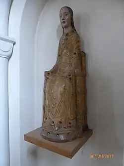 Eine weitere Sitzmadonna[10] über dem südlichen Langhausaltar und eine Statue des Hl. Nikolaus im nördlichen Querhaus gehören der gotischen Zeit um 1310 an.[10]
