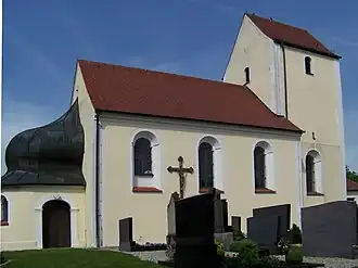 Die im Kern romanische Saalkirche wurde im 13./14. Jahrhundert erbaut und im 18. Jahrhundert barock verändert. Sie besteht aus dem Langhaus zu drei Jochen, dem Chorturm im Osten und einem Vorbau im Westen, der zum Portal führt.