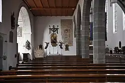 - In die Südwand des Chores ist der Tabernakel aus Eisen eingelassen, die zwölf Verriegelungen sind von 1717. Die Kunstschmiedearbeit gilt als herausragend.