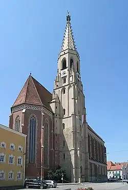 Die Kirche, die innen 49 m lang, 22,5 m hoch und 21 m breit ist, besitzt einen dreijochigen, etwas breiteren Chor mit einem schmäleren Langjoch, und ein sechsjochiges, dreischiffiges Langhaus mit integrierten schmalen niedrigen Seitenkapellen. Die steile Proportionierung der Räume wird durch die Regotisierung betont, ist jedoch wie bei anderen Bauwerken des Hans von Burghausen bereits in den mittelalterlichen Raumteilen angelegt und wird durch die extrem schlanken, reich profilierten Pfeiler mit kämpferlosen Scheidbögen wirkungsvoll unterstrichen.