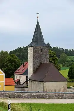 Die Chorturmkirche wird auf das frühe 13. Jahrhundert datiert, obwohl Fensterformen und Mauertechnik auf eine frühere Entstehung hinweisen. Ursprünglich besaß die Kirche keinen Turm, sondern nur einen Rechteckchor, der etwas niedriger als das Langhaus war. In der zweiten Hälfte des 13. Jahrhunderts wurde der Chor eingewölbt und zu einem Turm aufgestockt. Aus dieser Zeit stammt auch die älteste der drei Glocken, die aufgrund ihrer Form in die Zeit von 1270/80 bestimmt wird. In der Zeit des Barock wurde die Kirche umgestaltet, ohne dass aber ihre romanische Fassade zerstört worden wäre. Dabei wurde das Langhaus um einen Meter erhöht, größere Fenster eingebrochen und der Turm mit Bruchsteinen aufgestockt; der heutige Spitzhelm ist aus rezenter Zeit.