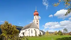 Das Siedlungsgebiet erstreckt sich von der Schlucht des Eisack auf 400 m s.l.m. bis hinauf zum Laranzer Wald auf 1100 m. Das kleine Ortszentrum mit der 1234 erstmals urkundlich erwähnten Kirche liegt auf einer Terrasse auf rund 750 m.[2] Unweit am Pflegerhof befindet sich die Burgruine Aichach.