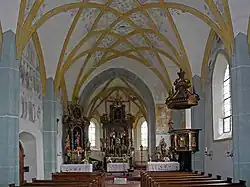 Der Hauptaltar sowie die beiden Seitenaltäre wurden vom Bildhauer Michael Mayr aus Brixlegg erschaffen.[5] Die Krippe, die seit einiger Zeit ganzjährig ausgestellt wird, wurde von Petrus Schmid dem Jüngeren im Jahre 1763 gebaut.