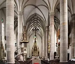 - Das Monumentalkruzifix aus der Werkstatt von Jörg Artzt (oder Arzt) entstand um 1520/30 und befindet sich an der Nordwand der Kirche.
