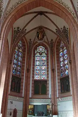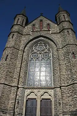 Die Pfeiler der Vierung, die Türeinfassungen und die Gesimse sind aus Mayener Basaltlava. Die Maßwerke der Fenster, Wanddienste und Gewölberippen sind aus Udelfangernem Sandstein und Weibernem Tuff gefertigt. Die ursprünglich mit heimischem Schiefer gedeckten Dächer bekamen bei der Renovierung im Jahr 1981 Kunstschiefer.