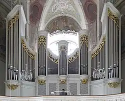 Eine Orgel wurde 1755–56 von dem Orgelbauer Joseph Anton Boos gebaut. Sie besaß um 1860 folgende Disposition: