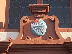 Das Wappen von Fürstbischof Julius Echter von Mespelbrunn ist am Ostportal der Südseite angebracht.[7]
