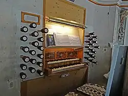 - Koppeln: II/I Manualkoppel (Schiebekoppel), I/P