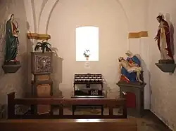 Vom ehemals befestigten Kirchhof sind noch Mauerreste mit Schießscharten erhalten.