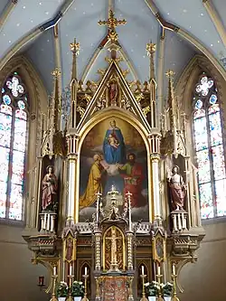 Der neugotische Hochaltar stammt von Franz Joseph Kaspar und wurde 1840 geschaffen. Das Altarbild aus der Zeit um 1850 von Johann Kaspar zeigt die Muttergottes mit den beiden Apostelfürsten Petrus und Paulus. Die Seitenaltäre wurden 1844 von Johann Georg Prestele gefertigt. Die Altarbilder der Seitenaltäre, ebenfalls von Johann Kaspar, zeigen links Maria und rechts den hl. Joseph.
