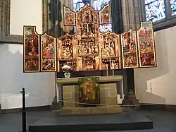 - Ein acht Meter hoher barocker Hauptaltar kam 1647 in die Kirche; er wurde im Zweiten Weltkrieg zerstört.[13]