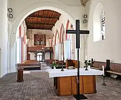 Die historische Ausstattung wird durch eine Triumphkreuzgruppe von 1863 aus der Dorfkirche Vietlübbe gebildet.[3]