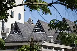 Da auf einen im Entwurf vorhandenen Glockenturm verzichtet wurde,[1] gibt es auch kein Geläut. Eine Orgel ist nicht bekannt.[3]