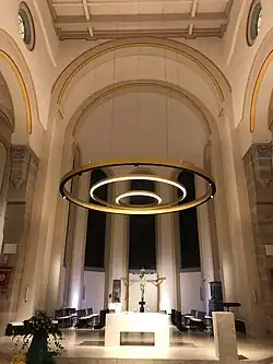 Während der Renovierung 2016/2017 wurde der Chorbereich auf die vorkonziliare Höhe von drei Stufen abgesenkt. Die Treppenanlage wurde weiter in das Kircheninnere gezogen und spiegelt nun die Form der Apsis. Auch der Altar wurde näher an die Gemeinde gerückt. So entstand die sogenannte Werktagskapelle, in der nun kleinere Gottesdienste stattfinden. Der Chorbereich verfügt hierzu über eine flexible Bestuhlung. Wie auch Altar und Ambo besteht der Bodenbelag aus Kelheimer Kalkstein. Die Spiegel-Orgel befindet sich seit der letzten Renovierung ebenfalls im Altarbereich.