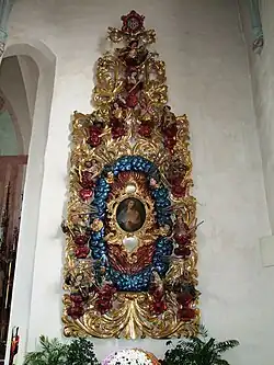 Dekan Georg Koller schaffte im Jahr 1713 den Herz-Jesu-Altar an. In der Mitte des Altaraufsatzes befindet sich in einem Medaillon ein Herz-Jesu-Bildnis, das üppig mit vergoldeten Rokoko-Ornamenten und einem Wolkenband mit Engelköpfchen gerahmt wird. Akanthusranken und farbige Halbfiguren der 14 Nothelfer umgeben das Medaillon.[7] Im Uhrzeigersinn, oben beginnend, sind dies Georg mit Lanze und Drachen, Barbara mit Kelch und Schwert, Vitus im Kessel, Cyriakus als Diakon, Eustachius mit Hirsch, Blasius als Bischof, Ägidius mit Hirsch, Katharina mit Schwert und zerbrochenem Rad, Erasmus mit Mitra und Stab, Margareta mit Speer und Drachen, Achatius mit Dornen und Kreuz, Christophorus mit dem Jesuskind, Dionysius mit geköpftem Haupt, Pantaleon.[13] Der Altaraufsatz wird von einem Medaillon mit der Inschrift IHS gekrönt.