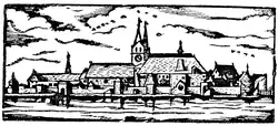 Diese Kirche vom Ende des 10. Jahrhunderts wurde im 11. Jahrhundert zu einer dreischiffigen romanischen Basilika umgebaut. Nach einem Brand des Klosters 1410 wurden sowohl Kloster als auch Kirche im spätgotischen Stil in großen Teilen neu erbaut. Um 1476 war die große dreischiffige Basilika ohne Querhaus vollendet, die bis heute den baulichen Kern der Kirche bildet. Von ihr ist der hölzerne Dachstuhl noch weitgehend erhalten. Die beiden Westtürme zeigen im Glockengeschoss im Inneren noch das Backsteinmauerwerk aus dieser Zeit und besitzen ebenfalls noch die Dachstühle der Turmhelme, allerdings wurden sie später in ihrer äußeren Form verändert.