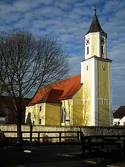 Der Turm der Pfarrkirche St. Richard ist deutlich älter als das Langhaus. Der quadratische Unterbau des Turmes gehört wohl noch dem 14. Jahrhundert an. Die heutige Saalkirche wurde um 1480 in der Zeit der Spätgotik errichtet. Nach der Zerstörung im Dreißigjährigen Krieg wurde sie 1643 wieder aufgebaut. Die Sakristei stammt aus dem Barock.