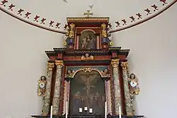Aus der alten Kapelle wurde der barocke Holzaltar aus dem 17. Jahrhundert übernommen. In der Mitte befindet sich ein Gemälde mit der Darstellung der Kreuzigung Christi und darüber Maria als Himmelskönigin. Skulpturen des heiligen Rochus, dem die Kapelle geweiht ist, des heiligen Josef mit Kind, der Muttergottes Maria und des heiligen Quirinus stehen auf Konsolen im Schiff.