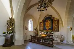- Marienaltar (nördlicher Seitenaltar) mit Mondsichelmadonna (18. Jahrhundert), Altarflügel (19. Jahrhundert)