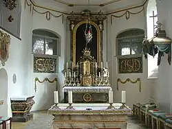 Von den zahlreichen Gemälden in dem Raum zeigt dasjenige im linken Seitenaltar die Kirchberger Gräfin Ida von Toggenburg, dasjenige im rechten Seitenaltar dagegen die Anbetung des Jesuskinds durch die Heiligen Drei Könige.[3]