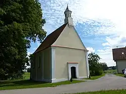 Der flachgedeckte Saalraum besitzt drei Achsen mit halbrundem Schluss. Die Innenwände sind mit achsenweise angeordneten Lisenen gegliedert. In den Westecken sind sie schmal und geknickt. Der halbrunde Schluss ist ebenso in drei Achsen geteilt. Ein Gesims schließt die Lisenen an den Seiten der Scheitelachse ab. In den Schrägachsen und den beiden östlichen Langhausachsen befinden sich rundbogige, eingezogene Fenster. Im Westteil der Kapelle befindet sich eine gefelderte Holzempore. Die Westtüre ist stichbogig. Außen ist die Kapelle durch Lisenen gegliedert, die an den Westecken zusammenstoßen. Darüber befindet sich ein knappes, profiliertes und verkröpftes Gesims und am Westgiebel ein dünnes Sohlgesims. Ein blechgedeckter Dachreiter auf dem Westgiebel kragt auf Profilen vor und besitzt einen quadratischen Sockel und ein achteckiges Obergeschoss mit Rundbogenöffnungen. An den Hauptseiten ist ein profiliertes Gesims angebracht.