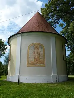 Die Kirche wurde auf einem alten Pestfriedhof im Jahre 1635 erbaut. Im Frühjahr 1636 war sie vollendet. Die Weihe fand am 1. Mai 1636 statt. Früher umgab die Kapelle ein Eichenwald und sie wurde im Volksmund auch St. Sebastian im Eichwald genannt. Bis 1729 wohnte bei der Kirche ein Eremit. Im frühen 18. Jahrhundert wurde die Kapelle wahrscheinlich umgebaut. Bei der Schlacht von Oberkammlach im Jahre 1796 verwüsteten französisch-republikanische Truppen die Kapelle. In den folgenden zwei Jahren wurde die Kirche renoviert. Das Türmchen wurde 1858 erneuert. In den Jahren 1884, 1919/20, 1939/40 und 1966 (außen) fanden erneut Renovierungen statt.