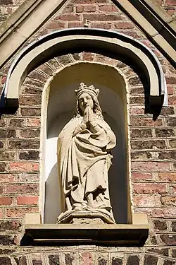 Bei der Kirche St. Servatius handelt es sich um einen Backsteinbau mit einem Schieferdach.