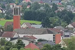 Für das heutige Kirchengebäude wurde 1959 eine im Jahr 1755 errichtete Kirche mitsamt Kirchturm aus romanischer Zeit, der mehrere Vorgängerbauten überdauert hatte, abgerissen.[1][2] Grund für den Abriss war durch Bevölkerungswachstum entstandener Platzmangel in der alten Kirche, die zuvor in den Jahren 1945 bis 1947 noch einer Restaurierung zwecks Beseitigung von durch den Zweiten Weltkrieg verursachten Schäden und einer Ausmalung unterzogen wurde.[3]
