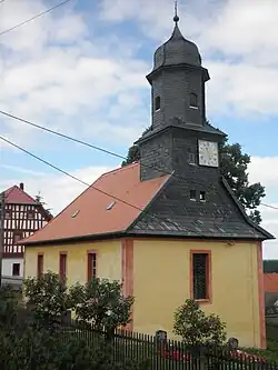 1706 wurde die rechteckige Saalkirche mit östlichem Dachreiter neugebaut. Seit 1990 wurden der Kirchturm und das Dach saniert. Der Innenraum des Schiffes wurde angestrichen.