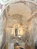 Der älteste erhaltene Teil der Kirche ist ein Freskenraum, der auf das Jahr 1350 datiert wird und als Chorraum einer Kirche romanischen Stils gedient hat. Heute wird er als Sakristeiraum genutzt, der ausserhalb der Gottesdienste öffentlich zugänglich ist.
