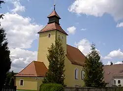 Die Kirche ist eine Chorturmkirche mit einem gotischen Kern aus dem 14. Jahrhundert. Der Innenraum wird von einem gemauerten Tonnengewölbe mit Stichkappen und Gurtbögen überspannt. Dieses ruht auf Pilastern. Ende des 18. Jahrhunderts war die Kirche so baufällig, dass hier keine Gottesdienste mehr gehalten werden konnten. Der Kirchturm neigte sich zur Seite, sodass man die Glocken entfernen musste. Auch das Altargewölbe unter dem Turm war gesprungen und auch dem Langhaus drohte der Einsturz. Für die Gottesdienste musste man nun auf die Kapelle auf dem Kalvarienberg ausweichen.