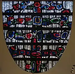 Der wuchtige Bau wird durch parabelförmige Bleiglasfenster belichtet. An den Enden der Kreuzarme versorgen vier große Glasbetonfenster in Form von nach oben geöffneten Parabeln den Innenraum mit Licht. Sie werden durch vier horizontale Bänder gegliedert. Jupp Jost aus Hattersheim entwarf die bunten Bleiglasfenster mit abstrahierenden Motiven, die von den Farben Rot und Blau beherrscht werden. Sie wurden von der Firma Ignaz Donath & Sohn aus Gelsenkirchen-Buer ausgeführt.[6] Das Fenster über dem Altarbereich im Westen zeigt den Lebensbaum, dessen Verästelungen verschiedene biblische Baummotive vereinen, wie den Paradiesbaum und das Kreuz Christi. Das Nordfenster bringt in Form und Farbe die Bewegung der göttlichen Gnade von oben nach unten und in umgekehrter Richtung das Gebet zum Ausdruck. Das Ostfenster ist Maria gewidmet und zeigt die „geheimnisvolle Rose“ (Rosa mystica) der Lauretanischen Litanei. Im Südfenster, in dem sich eine goldene Krone farblich abhebt, wird das Leben und Martyrium von Thomas Morus thematisiert.[3]