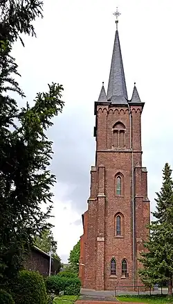 Bereits 1881 begann man mit der Einrichtung einer Sakristei und einer Paramentenkammer in den erhaltenen beiden Untergeschossen des alten Glockenturmes nach den Plänen von August Carl Lange. Der Baubeginn des neuen Glockenturms verzögerte sich jedoch, da August Carl Lange erkrankte und schließlich am 24. Mai 1884 verstarb. Die unvollendeten Pläne wurden nun von Heinrich Wiethase fertiggestellt, sodass im Herbst 1884 endlich mit dem Bau des heutigen Glockenturmes begonnen werden konnte. Eigentlich sollte der Turm bereits im Herbst 1895 fertiggestellt sein, jedoch zog sich die Vollendung noch bis 1887 hin. Die Maurerarbeiten nahm der Morschenicher Maurermeister Heinrich Olbertz vor. Damit war die Ellener Pfarrkirche endlich vollendet und erhielt weitestgehend ihr heutiges Aussehen, welches durch die Restaurierungsarbeiten nun stark vom Baustil der Neugotik geprägt ist.[3]