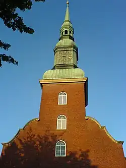 Die Monogramme der dänischen Könige Christian V. und Christian VI. an den Sandsteinportalen zeigen, welche Bedeutung der großen neuen Hauptkirche in der damals zweitgrößten Stadt des dänischen Gesamtstaats beigemessen wurde. Der Innenraum war als eigenständiger protestantischer Predigtraum angelegt. Emporen und Logen umfassten die Gemeinde, die auf die große raumbeherrschende Kanzel ausgerichtet war, während der barocke Hauptaltar vor dem Ostfenster an das Ende des Raumes gerückt war. Zwei sich durchkreuzende, von Außenwand zu Außenwand gespannte Tonnengewölbe bildeten im Schnittpunkt der vier Kreuzarme eine Vierung, über der sich im äußeren Bild der Kirche der große Dachreiter erhob.